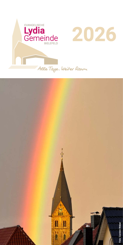 Alle Tage. Weiter Raum: Wir verstehen uns als eine gastfreundliche und einladende Gemeinde im Bielefelder Westen mit einem offenen Gotteshaus, einsichtig und hell, durchdrungen von dem, was uns von Herzen wichtig ist: Gemeinschaft unter dem Wort Gottes.